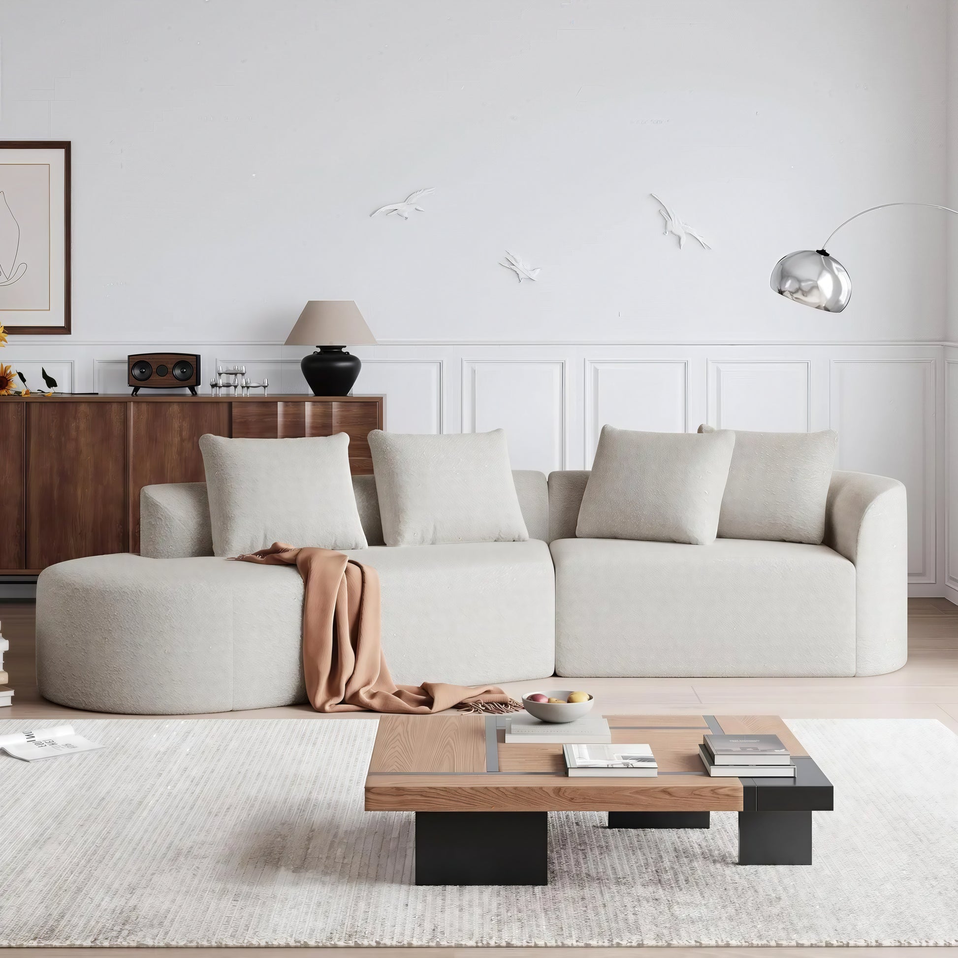 112'' Modern Cloud Sectional Sofa – Chenille 4-Seater Curved Couch with Pillows, Extra Deep & Wide Seat