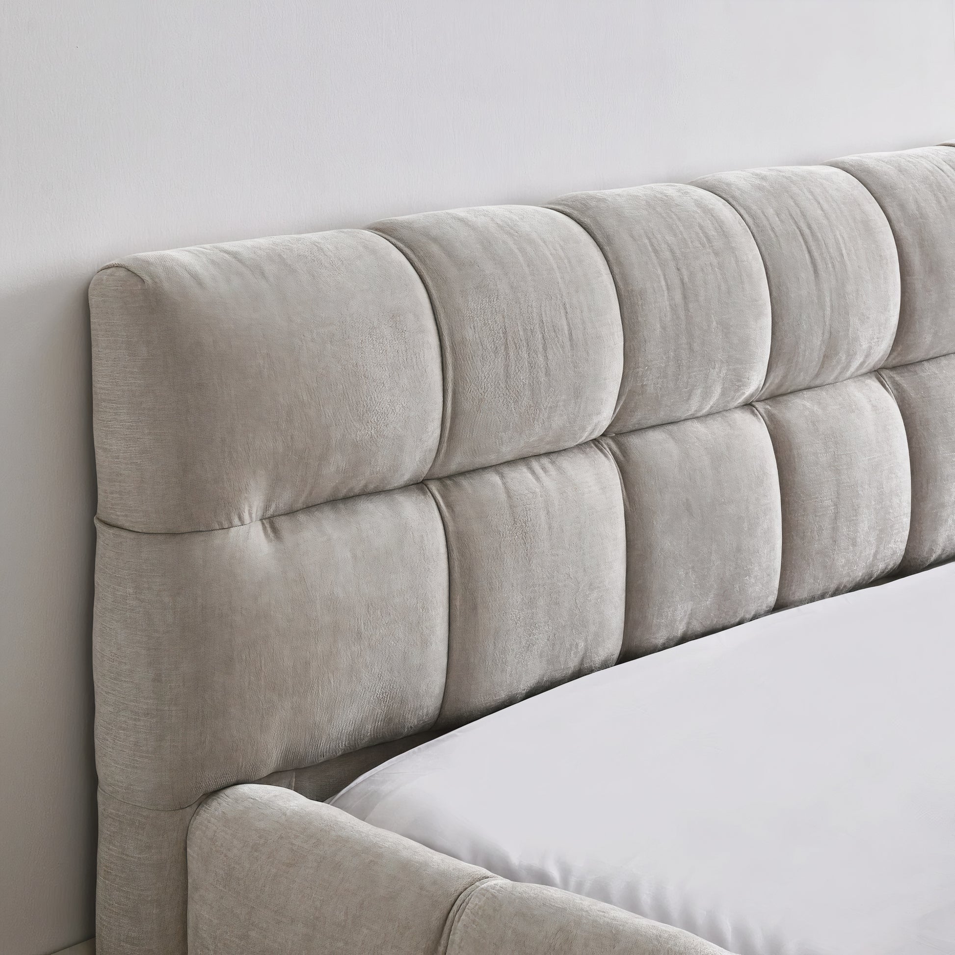 Elevate your bedroom with this exquisite queen size bed frame, featuring a plush upholstered design that combines comfort and style for a restful night's sleep.